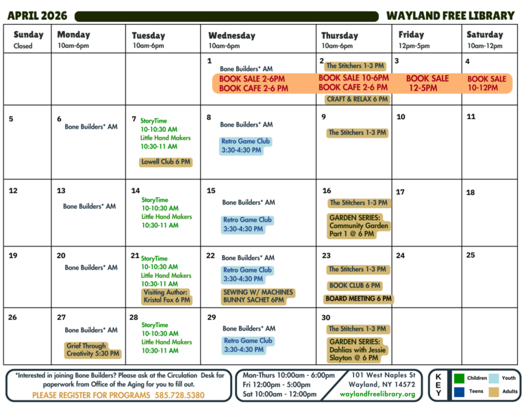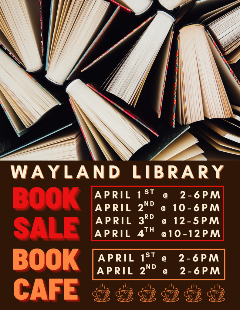 Book Sale Begins April 1st with a Book Cafe from 2-6 pm. Come find your next great read!