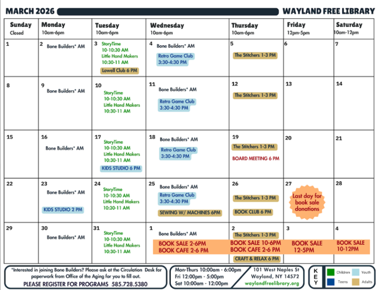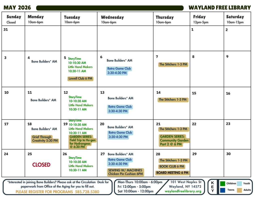 Please, let us know if you are willing to inspire, entertain, or teach our community at the Wayland Free Library!
