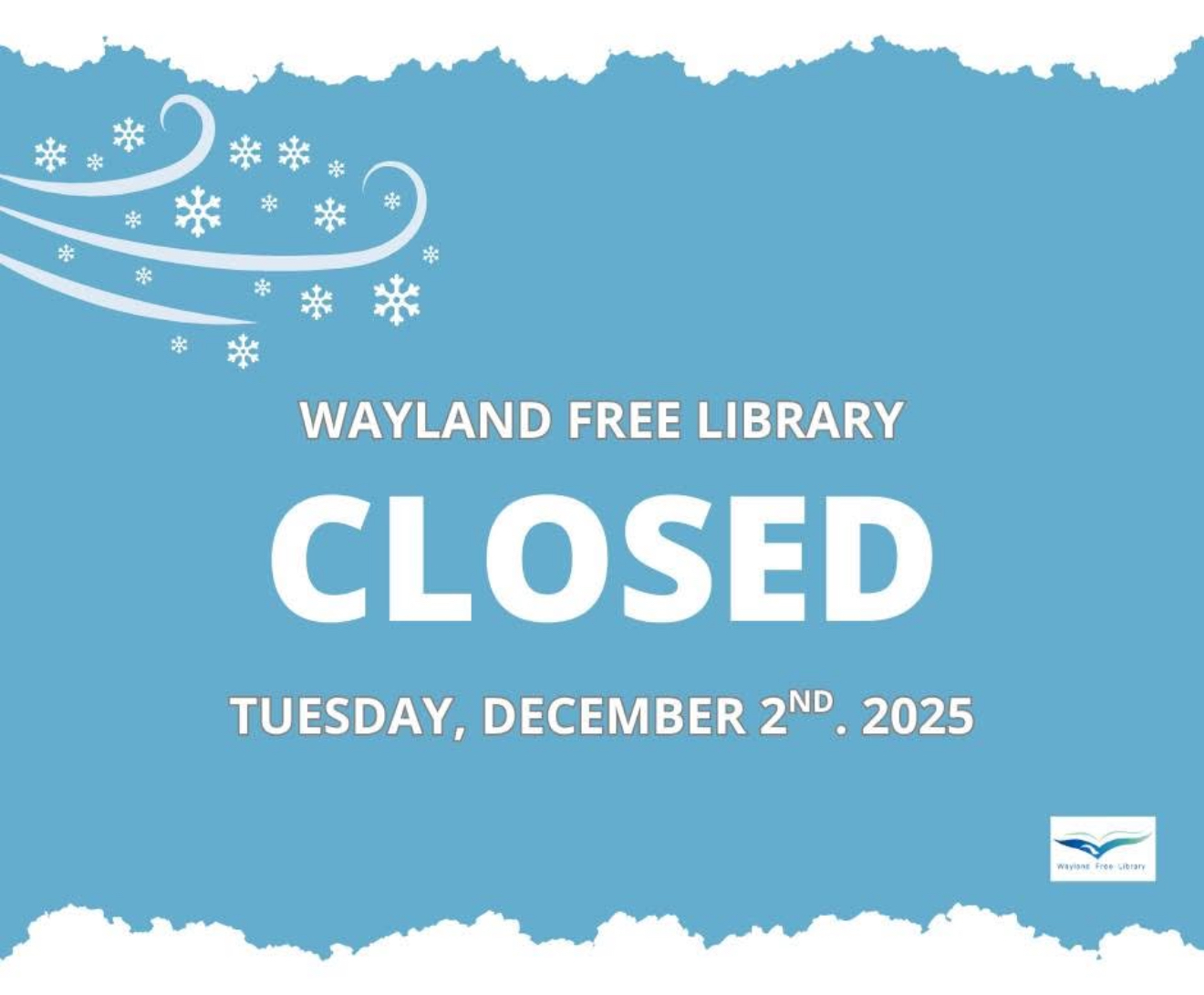 The Wayland Free Library will be closed Thursday the 27th and Friday the 28th for the Thanksgiving Holiday